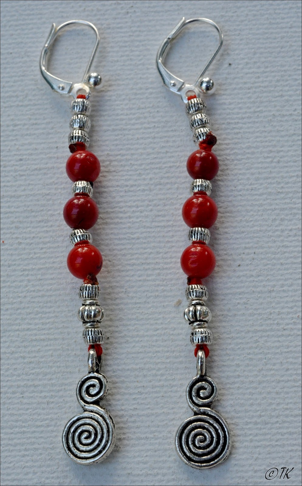 Boucles d'oreille en corail rouge véritable, métal argenté et verre ancien. Hauteur 5 cm, poids 8 gr. Boucles PA13, prix 12 euros. Contact captain.tiof@gmail.com