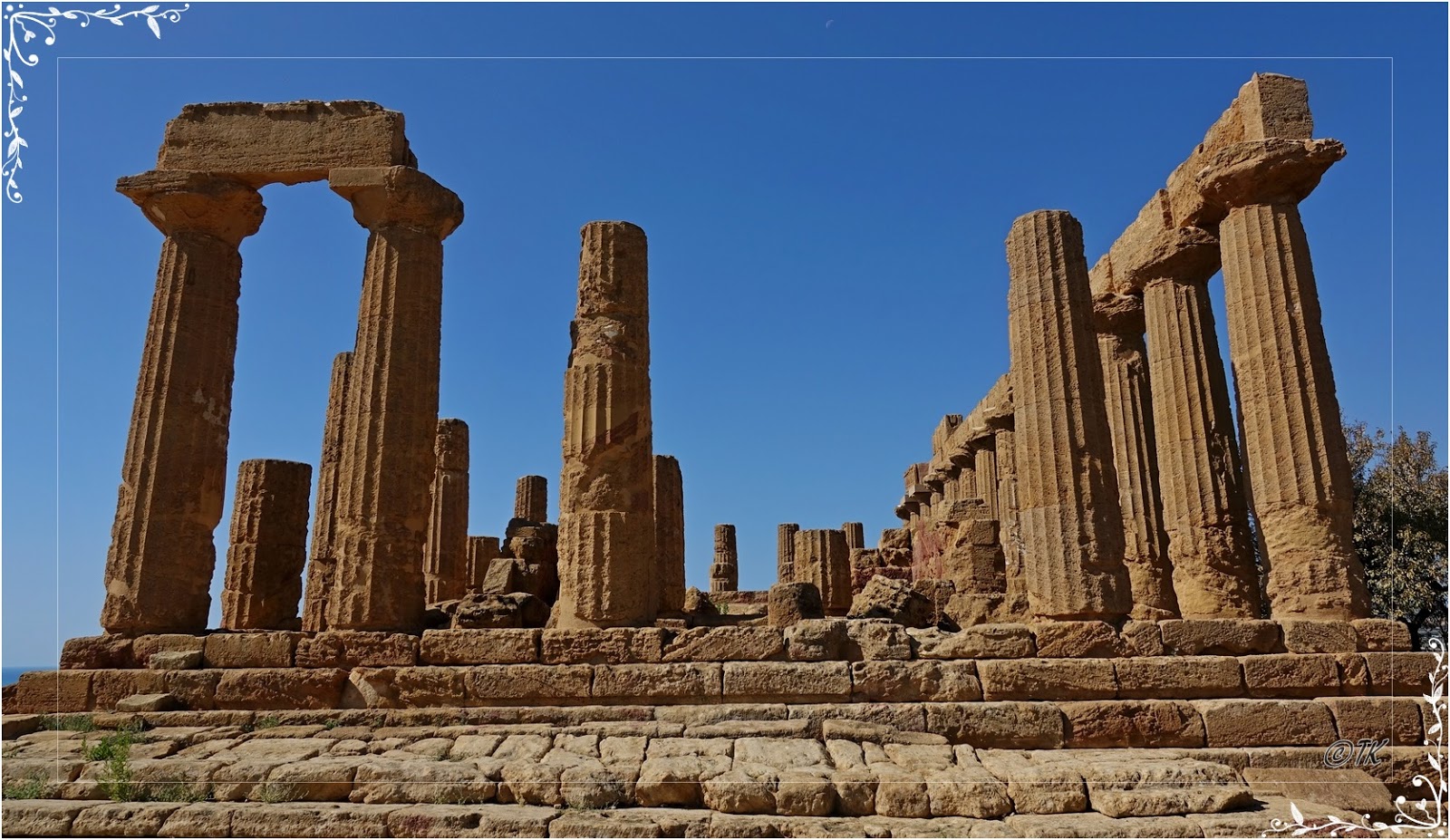 Après Trapani, Marsala, Mazara del Vallo, Sciacca, nous voilà au beau milieu de la côte sud-ouest de la Sicile à AGRIGENTE, dans la VALLÉE des TEMPLES. Ici, chaque pierre est un témoignage de la Grande Grèce. Jupiter et Hercule y ont leur Temple, mais c'est le Temple de la Concorde qui est le mieux conservé. L'Histoire s'écrit dans cette vallée à partir du VIe siècle avant Jésus-Christ avec la fondation de la colonie grecque d'Akragas. Quand nous quittons la Vallée, un vol d'ibis passe par magie au-dessus des ruines. Nous séjournons tout près de là à San Leone et nous savourons les plaisirs de la baignade dans une Méditerranée étonnamment tiède pour une mi-octobre. Dans le sable de la plage, Karine fait briller un collier acheté deux jours plus tôt à Sciacca tandis que des enfants insouciants profitent comme nous des plaisirs du sable et de l'eau. Nous nous baignons aussi un peu plus à l'est dans une anse oubliée au pied du vieux château de Montechiaro et à Punta Blanca, un lieu magique pour le farniente et la baignade. Sur la plagette, une épave, un bateau de migrants échoué là par beau temps voilà quelques mois. Les migrants sont bien présents dans les villes côtières du sud de la Sicile. Tous ont un téléphone portable. Ils vont par petits groupes de 3, 4 ou 5, à vélo ou à pied le plus souvent, parfois solitaires, comme ce soir, sur la plage de San Leone, à photographier un bateau, sans savoir qu'il s'agit du yacht privé le plus cher de l'histoire, le "A", propriété de l'oligarque milliardaire russe Andreï Meniltchenko qui vient d'arriver sur rade d'Agrigente. Demain, la route continue au sud-est vers RAGUSA. Par le plus grand des hasards, nous y retrouverons Andreï et son superbe yacht hors du commun. Amitiés, bises et bon dimanche à vous tous.